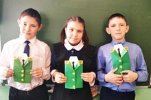 В преддверии праздника Дня защитника Отечества учитель начальных классов Ахмадиева Д. Т. провела мастер-класс по изготовлению оригинальной открытки.