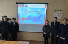 Руководителем школьного отряда юнармейцев Дорофеевой Ю.В.были проведены классные часы, приуроченные к дате воссоединения Крыма с Россией