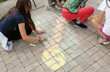 Сегодня дети рисовали на асфальте любимых сказочных героев.