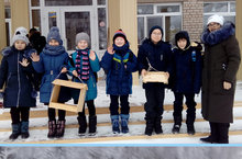 В школе прошла акция "Покорми птиц зимой". Ученики начальных классов своими руками сделали кормушки, а ученики среднего звена повесили их на деревья около школы.