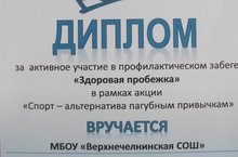 Наша школа награждается ДИПЛОМом за активное участие в профилактическом забеге "Здровая пробежка" в рамках акции "Спорт - альтернатива пагубным привычкам".