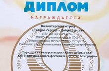 Волонтерский отряд "Доброе сердце - добрые дела" (руковод.Миннегалиева К.М.) завоевал Гран-при в конкурсе-акции "Книга добрых дел" XXII Международного фестиваля "Детство без границ"