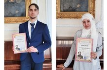 Призеры Открытого Всероссийского компьютерного конкурса "Пушкин и его эпоха" Нафиков Ислам (11 класс) и Ахметзянова Залия (11 класс) (руководитель Киямутдинова Г.Г.)
