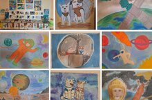 Выставка рисунков учащихся школы ко Дню космонавтики.