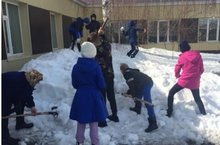 Акция "ЭкоВесна". В субботу на территории школы раскидали снег.