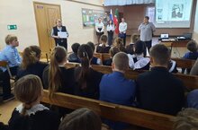 В Елантовскую школу для проведения мероприятия о нём приехали студенты и преподаватель политехнического колледжа.