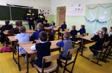 Сотрудники ГИБДД провели беседу с учащимися младших классов о правилах дорожного движения, о безопасности пешеходов на зимней дороге".
