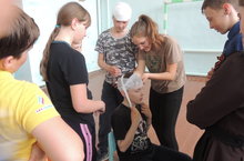 Сегодня в нашей школе прошел открытый урок по «Основам безопасности жизнедеятельности». Ученики 5-7 классов провели практическое занятие по оказанию 1 медицинской помощи.