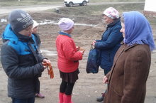 Школьники приняли участие во Всероссийской акции "Георгиевская ленточка". Они дарили её жителям с. Елантово, рассказывая о ее происхождении и значении. -