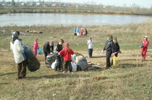 В нашей школе проходит акция "Поможем реке". Школьники занимаются сбором мусора по берегам реки Шешмы.