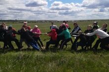 Детский Сабантуй сегодня состоялся на свежем воздухе. Ребята играли с мячами, скакалками, состязались в конкурсах, играли в волейбол, футбол.