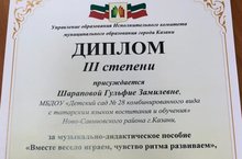 Поздравляем нашего музыкального руководителя, Шарапову Гульфию Замилевну, с победой в городском конкурсе "Электронные образовательные ресурсы в учебно-воспитательном процесс" в номинации "Лучший электронный образовательный ресурс для дошкольников". Желаем дальнейших творческих побед!