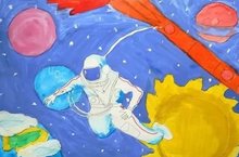 В детском саду прошел смотр рисунков, посвященных Дню Космонавтики