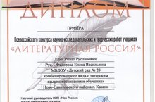 Поздравляем Шин Рината, воспитанника МБДОУ №28, под руководством Федоровой Елены Васильевны. Он стал призером во Всероссийском конкурсе научно-исследовательских и творческих работ учащихся "Литературная Россия".