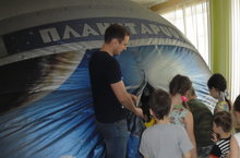 Мобильный планетарий при помощи специальных устройств показывает детям звездное небо. В доступной форме детям рассказывают о планетах солнечной системы, о первых покорителях космоса. Также есть возможность увидеть близко нашу планету, луну, звезды, метеориты, окунуться и ощутить себя частицей громадного мироздания.