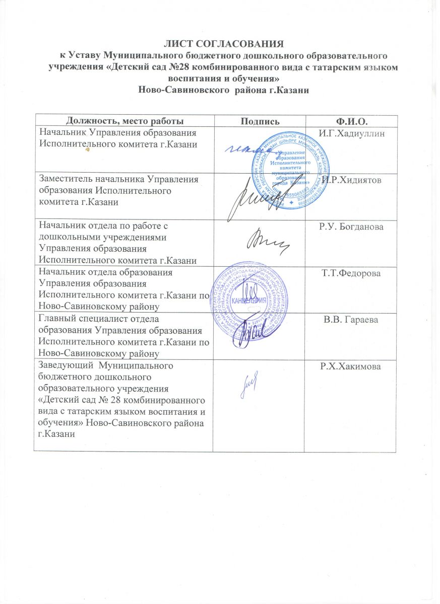 Лист согласования к Уставу МБДОУ "Детский сад № 28"