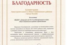 Благодарность Администрации Авиастроительного и Ново-Савиновского районов г.Казани 05.09.2016