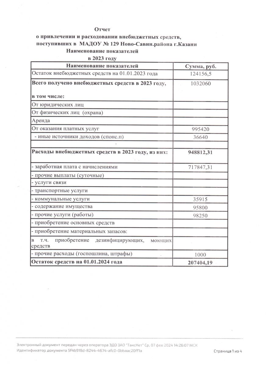 Отчет о привлечении и расходовании внебюджетных средств в 2023 году