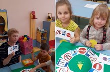 С помощью дидактической игры ребята 11 старшей группы вместе с воспитателем Шаровой Н.Е. учились различать дорожные знаки.Соотносили речевую форму описания дорожных знаков с их графическим изображением.