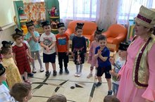 Навруз - на земле нет такого народа, который бы не отмечал и не гордился бы своими праздниками. Ибо в праздник концентрируется история народа, его язык, её специфические формы художественного творчества. Навруз - новогодний праздник мусульман, празднуется в день весеннего солнцестояния - 21 марта. Навруз - означает «новый день». В этот день дети ходили по домам, собирали праздничные угощения, рассказывали стихи хозяевам, желали здоровья и благополучия им и их семьям, ходили в гости, веселились, звучала музыка, песни и шутки. Развлечение, с элементами праздника "Навруз", понравился детям 2 группы. Вместе с воспитателем дети водили хоровод, рассматривали татарский народный костюм, сами примеряли калфак и тюбетейку, беседовали о татарских национальных блюдах, сделали аппликацию "Чак-чак" - один из самых любимых блюд детей, а после и угощались этим лакомством. Праздник удался!