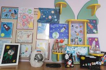 12 апреля в детском саду многие воспитатели рассказывают про космос, играют с детьми в космические игры и соревнования. В средней группе 2 прошла выставка работ, посвящённая дню косманавтики. Специально к празднику дети совместно со своими родителями изготовили поделки из разных материалов и использованием серьезных технологий.
