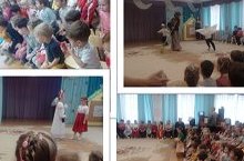 Старшими воспитанниками была представлена сказка «Гуси-лебеди». Малыши восторженно восприняли приход артистов, внимательно, с большим интересом смотрели сказку. Все остались довольны: и зрители и артисты.