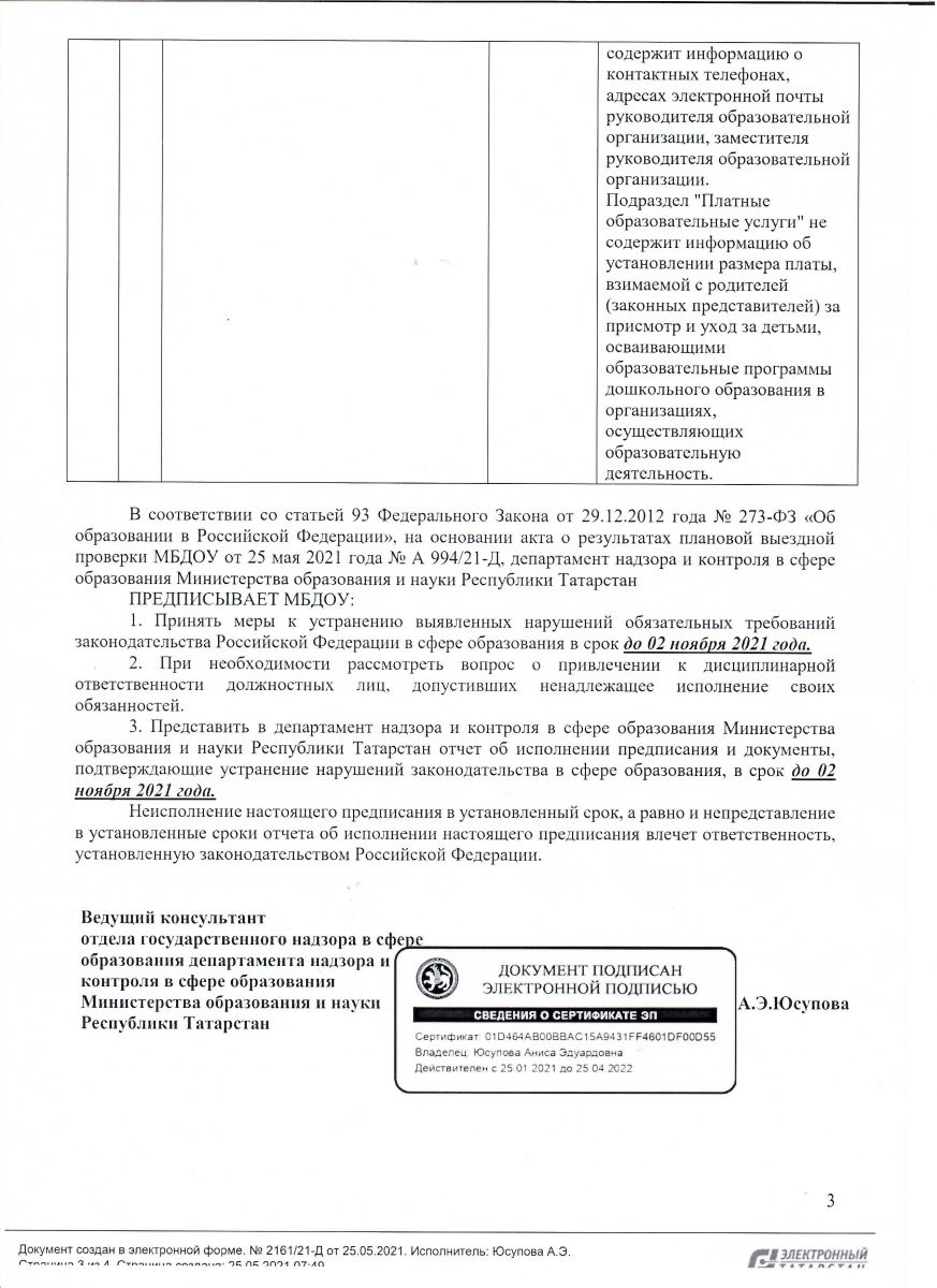 Предписания органов, осуществляющих государственный контроль (надзор) в сфере образования, отчеты об исполнении таких предписаний