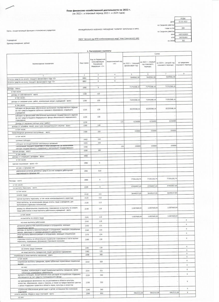 План финансово-хозяйственной деятельности ОУ на 2022 год