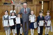 25 апреля, в Госсовете РТ состоялась церемония награждения по итогам конкурса «Парламентский урок – 2016» на тему «Гражданин. Общество. Государство», который прошел в феврале этого года в школах республики. Победителей поздравил Председатель Государственного Совета Республики Татарстан Фарид Мухаметшин. Среди победителей и ученица 2В класса нашей школы Маргарита (учитель Пашина Н.А.), занявшая 1 место в конкурсе рисунков «Татарстан-это мы!» 26.04.2016