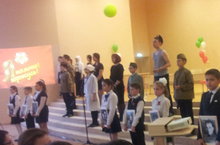 В большом актовом зале с литературно-музыкальной композицией "По праву памяти" выступили учащиеся 5 "Г", 7 "А", 7 "Б", 7 "М" классов.
