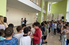 Сегодня в нашей гимназии прошла торжественная линейка с поднятием государственных флагов, а также классные часы на тему: "Наша страна - Россия!"