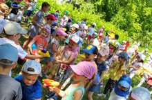 Сегодня жарко в городе, +27... Вот мы и решили провести для детей праздник "День Нептуна" и встретить жару с Повелителем морей и океанов! Две ведущие-русалки, Пират и Нептун провели с детьми весёлые соревнования и игры с водой, а в конце праздника танцы и традиционная забава с водяными пистолетами! Дети и взрослые остались очень довольны!