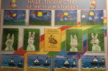 Сегодня в нашем детском саду работает выставка детских работ кружка "ИЗО-студия". На картинах юных художников зайцы смотрят как летают бабочки, плывут караблики...наверное мечтают о лете... Приходите полюбоваться!