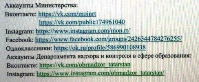 Аккаунты МО и Н РТ, Департамента надзора и контроля в сфере образования