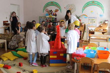 Одной из важных задач, котрую поставил перед собой педагогический коллектив в этом учебном году - это развитие творческих способностей детей через театрализованную деятельность. Для решение этой задачи педагоги создавали всевозможные условия, обогащали предметно-развивающую среду, пополняли методическую копилку, обменивались опытом по данному направлению. Но одной из интереснейших форм реализации задачи стало проведение недели театральных премьер. Каждая группа готовила спектакль, выбирая любой вид театра, и предствляла ребятам другой группы. Дети рисовали билеты, создавали афиши, распределяли роли героев сказки, а также гардеробщиков, буфетчиц, контролеров, конферансье и др. Каждая группа назначала свою цену за билет: у кого-то - воздушный шарик, а у кого- то конфета. Таким образом, образовался целый график спектаклей, где каждый ребенок детского сада был и зрителем и участником спектакля.