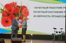 В канун Дня Учителя традиционно в ДК Ленина прошли праздничные мероприятия, где чествовали лучших педагогов Авиастроительного и Ново-Савиновского районов города Казани. Одним из них является наш руководитель - Урусова Нина Сергеевна. Она награждена нагрудным знаком Российской Федерации "За верность профессии".