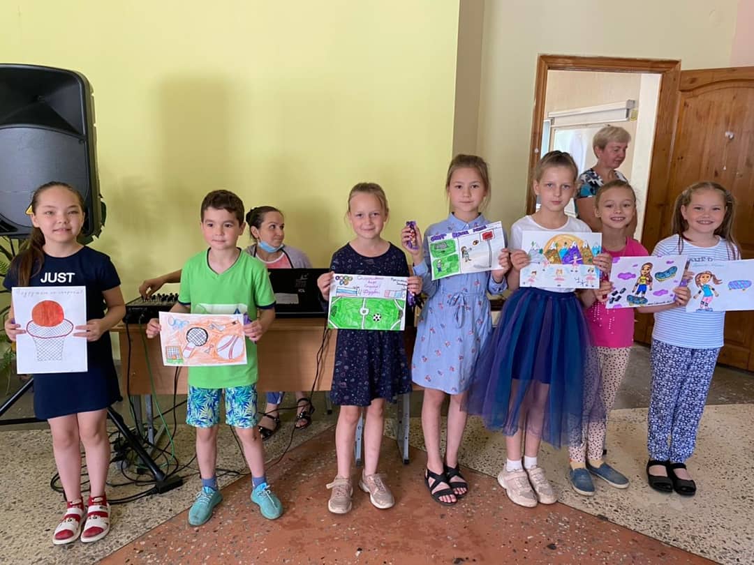 В продолжении были выполнены рисунки "Виды спорта" и лучшие работы отмечены конфетами.