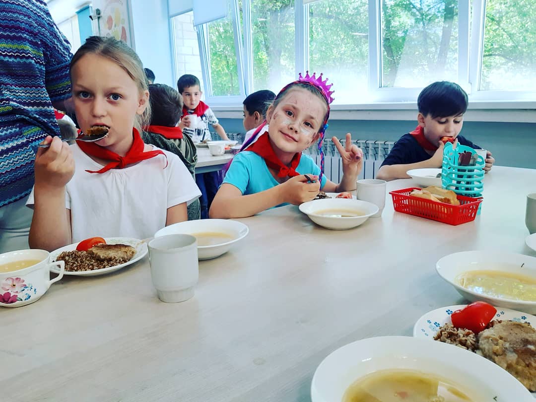 День-7. И утро началось со спортивного мероприятия "Веселые старты".Все были определены по 3 командам,выполняли спортивные задания.И победившая команда сегодня была награждена тортиком (в столовой прошла трапеза).