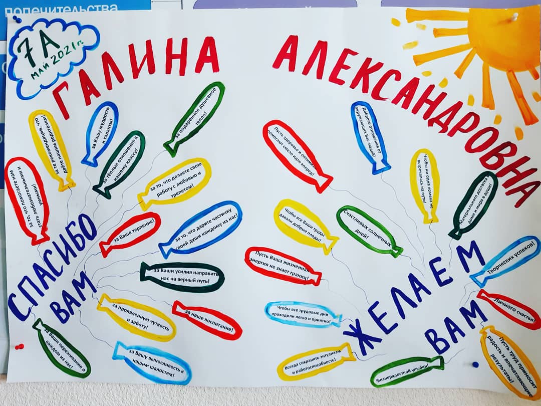 Учащиеся 7 "А" класса принимают участие в акции:"Спасибо вам,учителя!" и в преддверии окончания учебного года выражают слова благодарности своему классному руководителю-Галине Александровне!