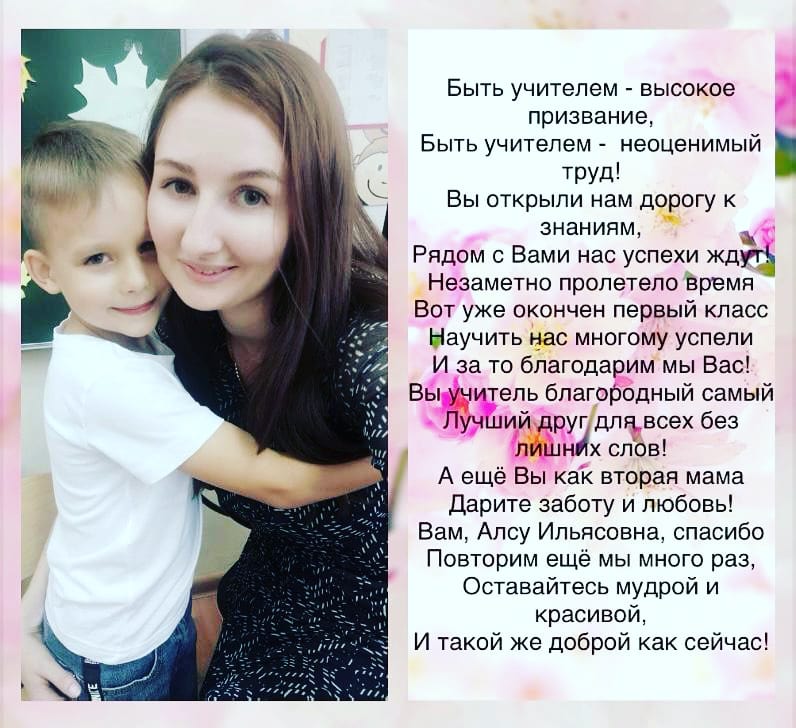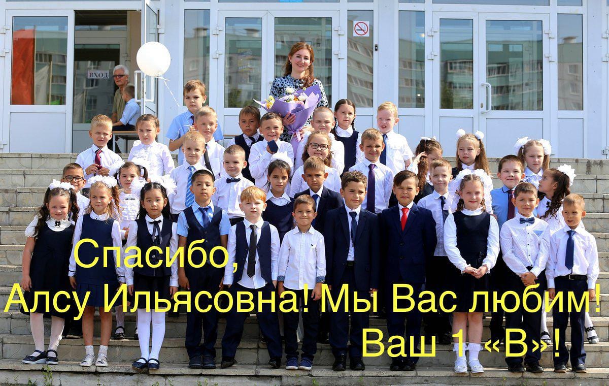От лица родителей и учеников 1 "В" класса выражаем огромную благодарность Алсу Ильясовне! Спасибо за Ваш вклад во всестороннее развитие наших детей! Нам с Вами очень повезло! Ценим и уважаем!