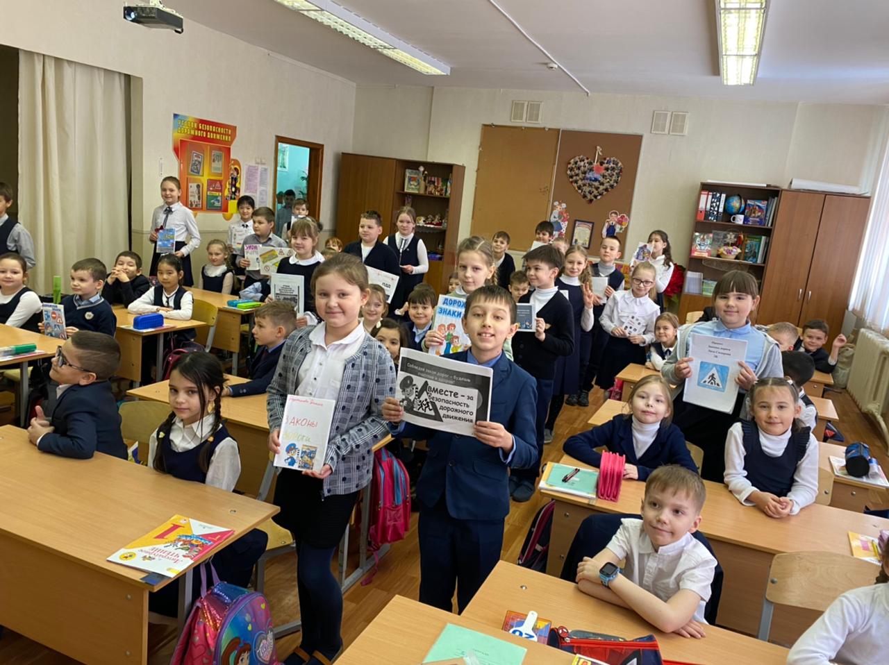 Первоклассникам было рассказано об опасных ситуациях, которые могут возникнуть на проезжей части дороги, к чему приводят нарушения Правил дорожного движения и невнимательность на дороге.