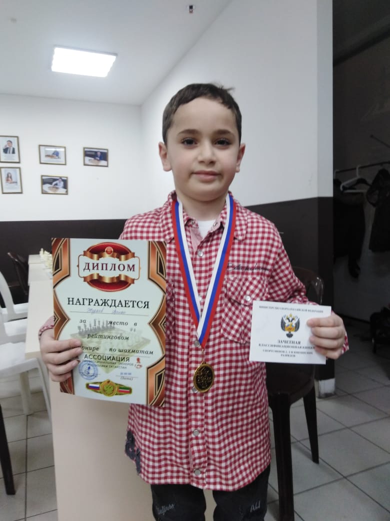 Поздравляем с ПОБЕДОЙ в турнире по шахматам ученика 1 "В" класса Жураева Арслана.