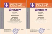 В октябре-ноябре 2023 г. проходила Веросийская олимпиада по психологии, в которой принимали участие ученики 8 классов. Поздравляем Немчинову Согдиану, ученицу 8"в" класса, и Аникина Ранеля, ученика 8"б" класса - призёров олимпиады!