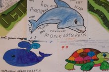 И сегодня они получили по морскому обитателя,которого они должны были узнать,раскрасить и поделиться знаниями о морских жителях.