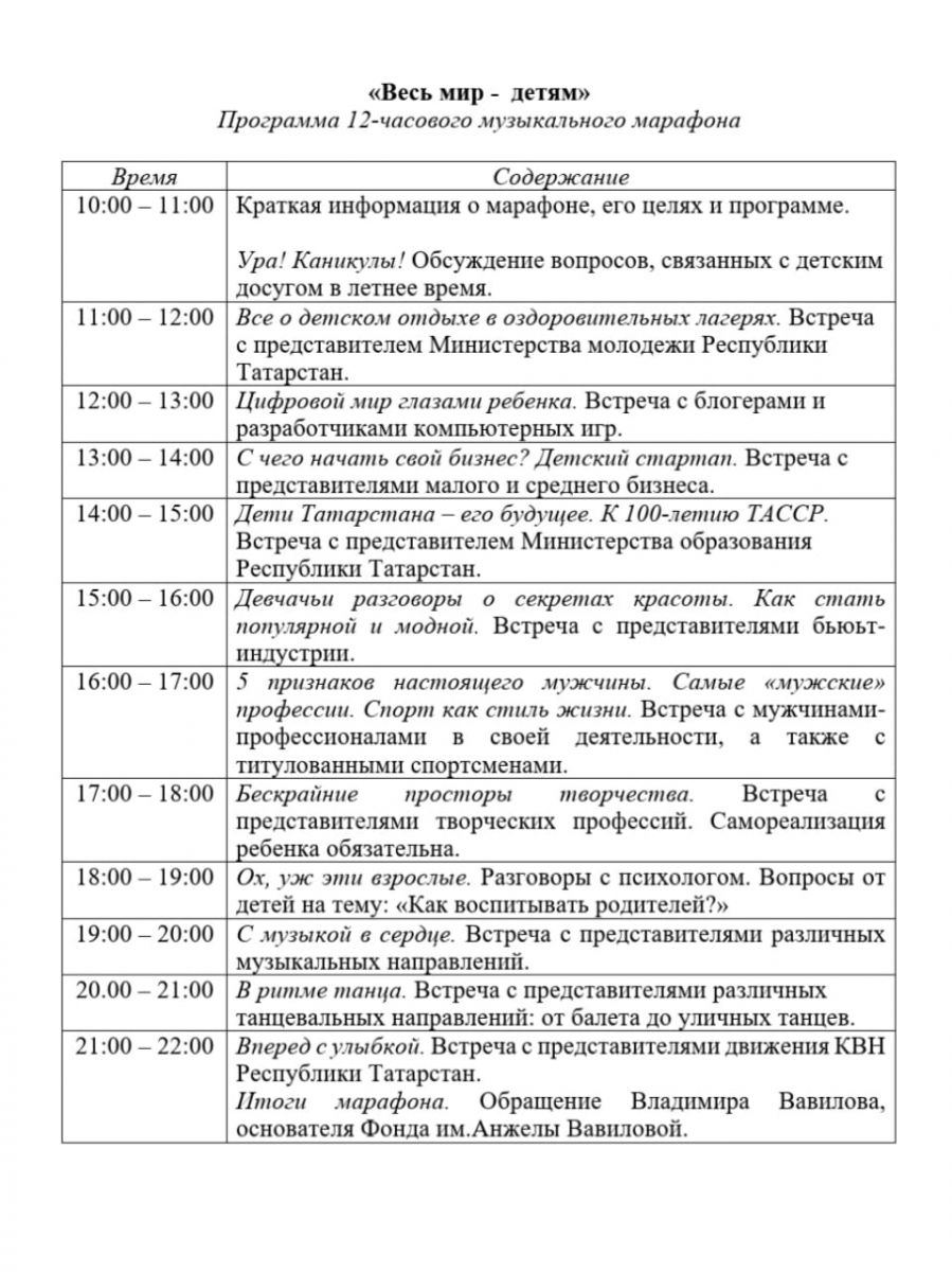 1 июня 2020 года в Казани пройдет один из самых продолжительных музыкальных онлайн-марафонов, посвященный Международному Дню защиты детей. Более 150 артистов, ведущих, блогеров и успешных людей придут в студию, чтобы поздравить мальчишек и девчонок с их праздником.