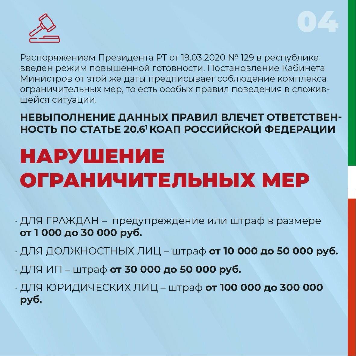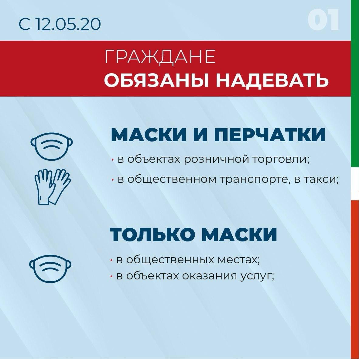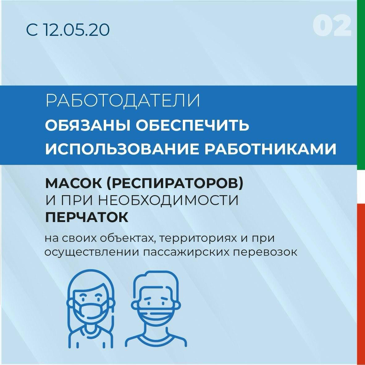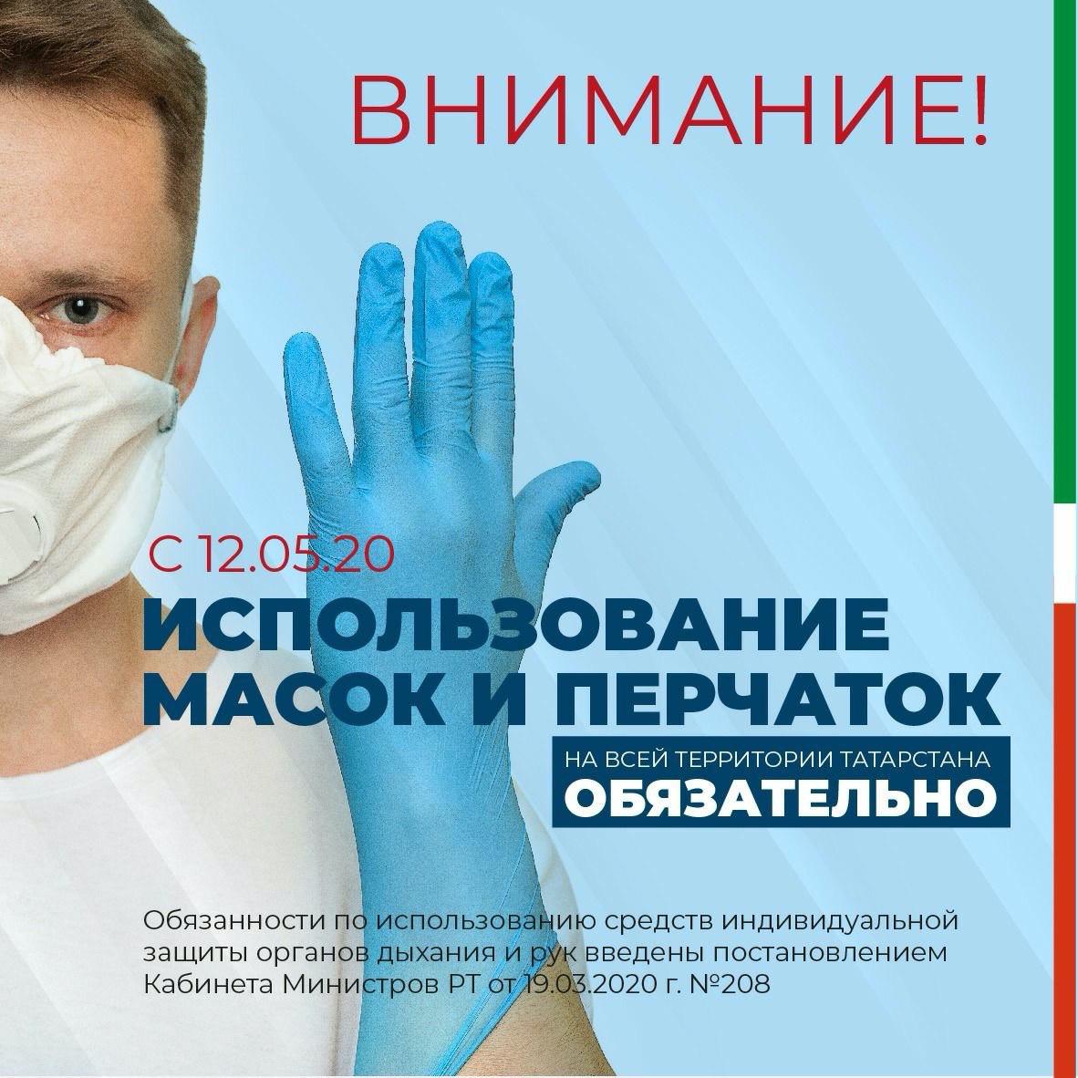 Обязанности по использованию средств индивидуальной защиты органов дыхания и рук введены Постановлением Кабинета Министров РТ от 19.03.2020г. №208