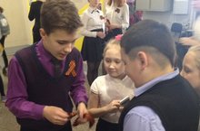 Сегодня в преддверии наступающего праздника Дня Победы в школе прошла ежегодная акция "Георгиевская лента". Всем желающим предлагалось ответить на вопрос про ВОВ и получить заветную символическую ленточку. Таким образом, учащиеся смогли продемонстрировать свои знания истории Великой Отечественной.