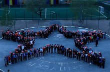 По инициативе учащихся и педагогов МБОУ "Школа № 23" и поддержке городской детской общественной организации "Дети Казани" сегодня во всех школах нашего города прошел флешмоб "Мы - наследники Великой Победы!" Наша школа не осталась в стороне от этого события - учащиеся школы выстроилась на школьном дворе в форме звезды, почтили память павших минутой молчания и пустили в небо воздушные шары, как символ памяти и скорби о невернувшихся с полей битвы.