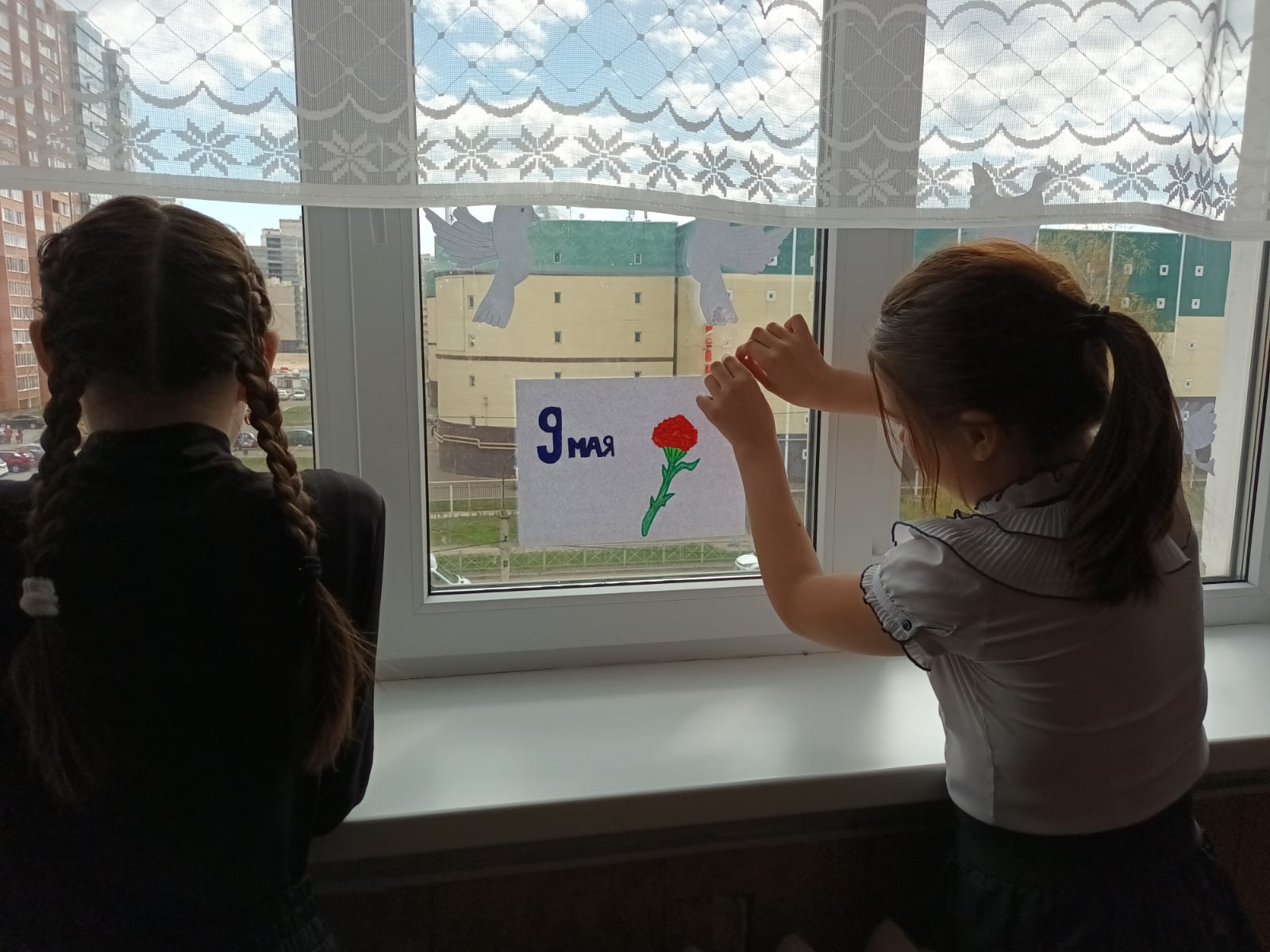 Учащиеся 4"Б" класса принимают участие в патриотических акцияхОкна Победы и Рисуем Победу