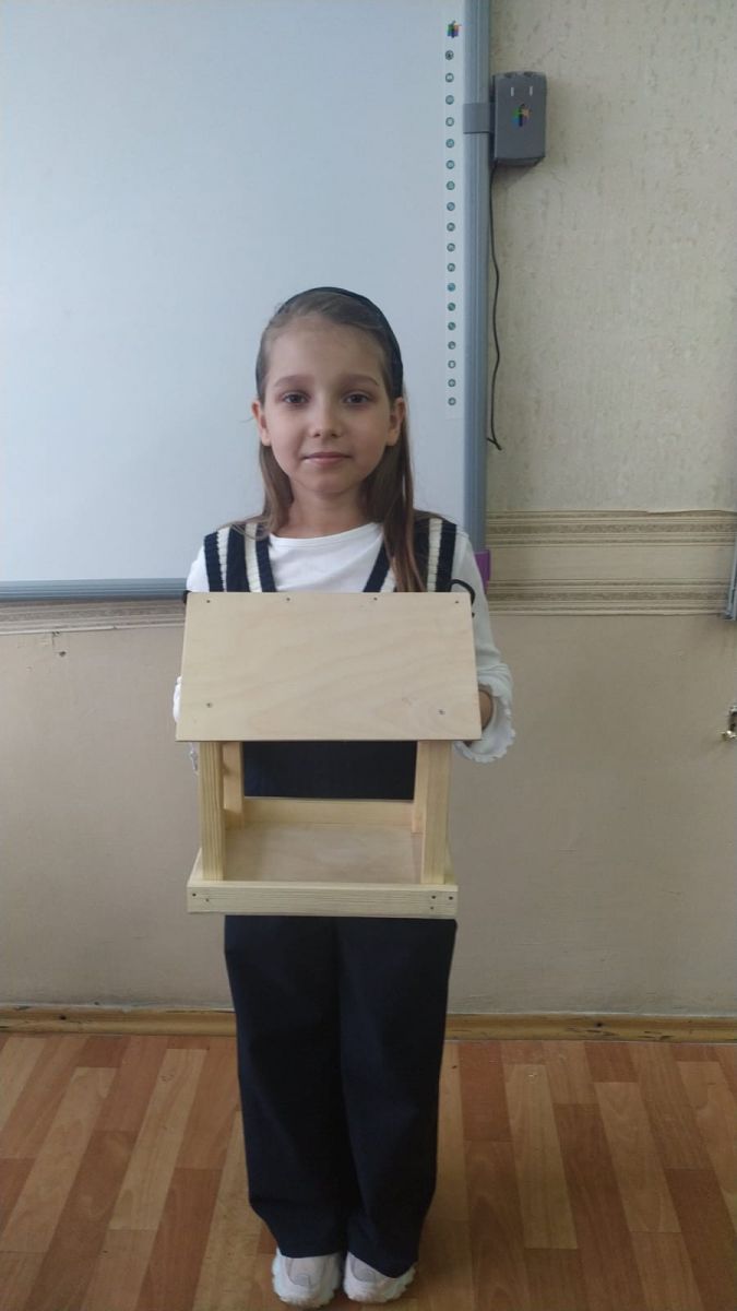 Гараева Азалия,ученица 3 "А" класса принимает участие в экоконкурсе:"Накормим птиц зимой!" в номинации " кормушка".